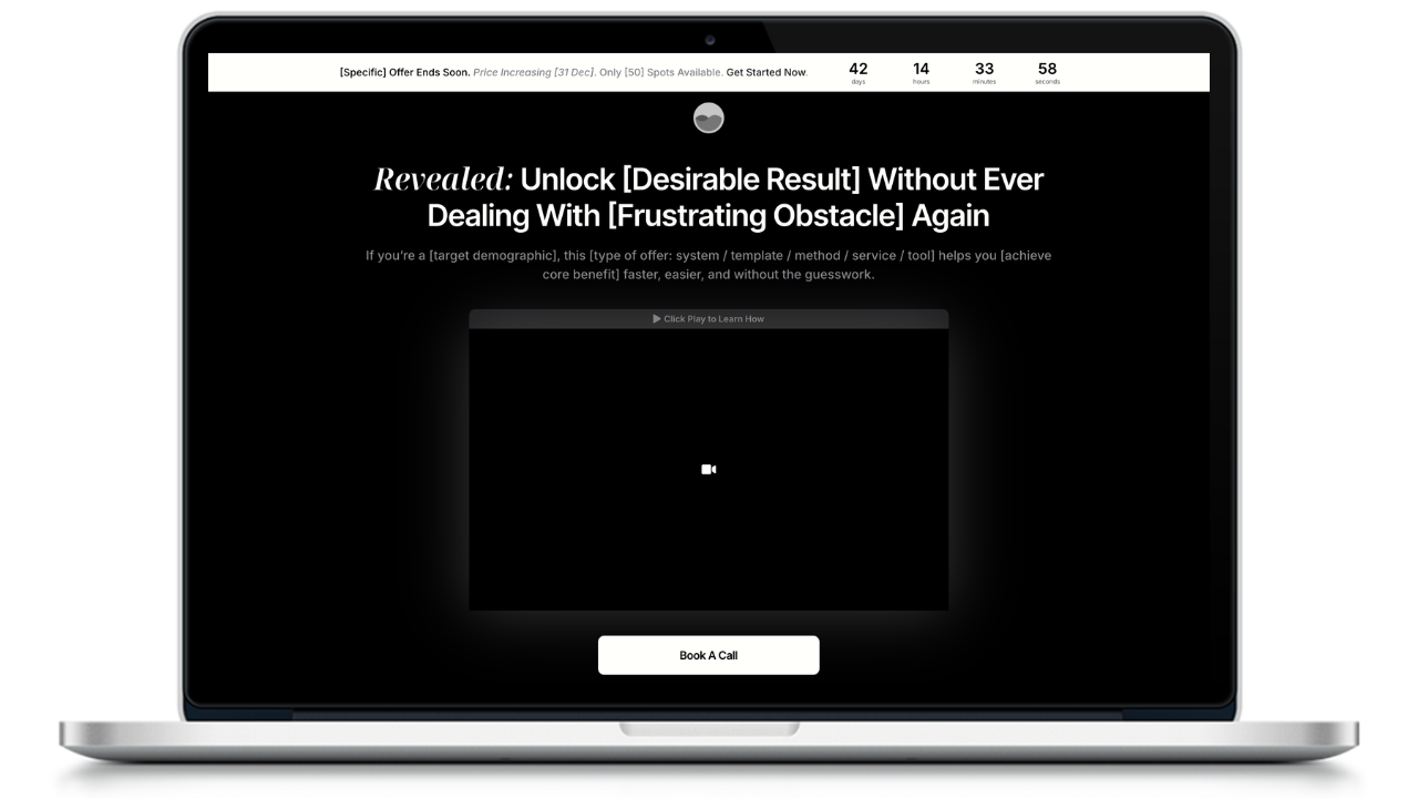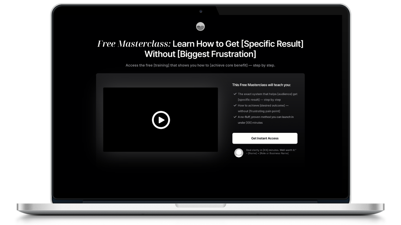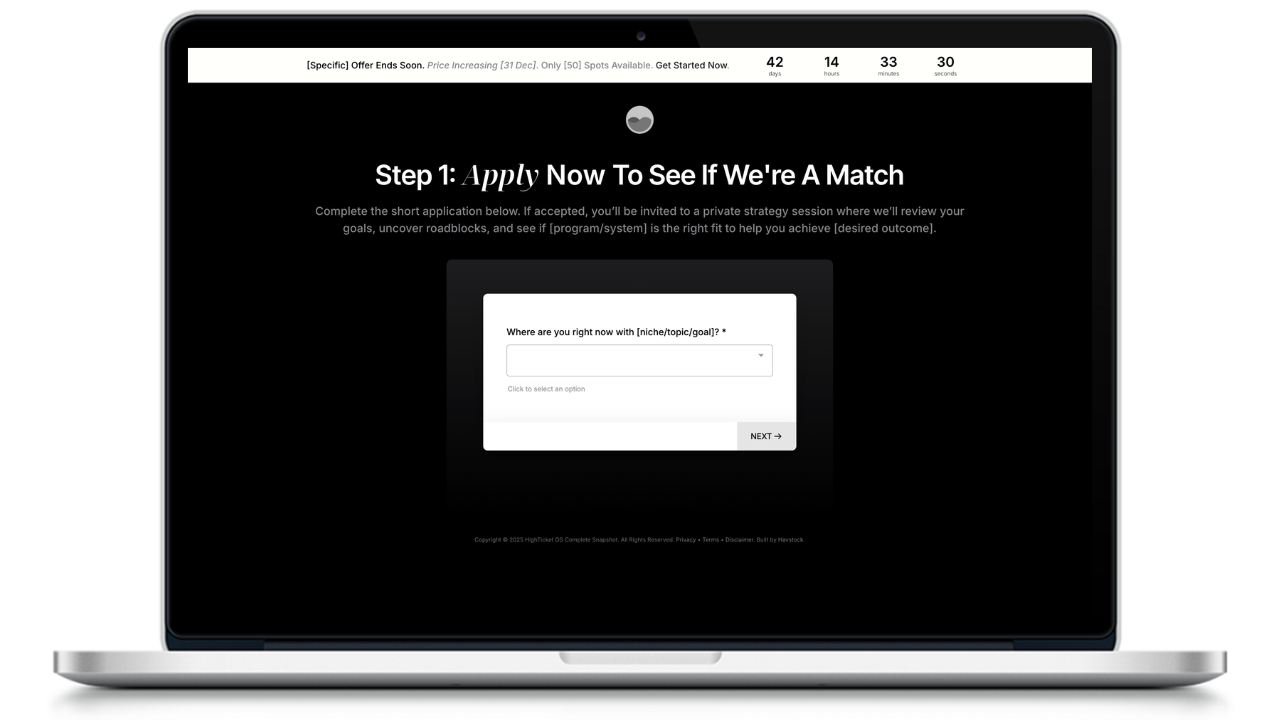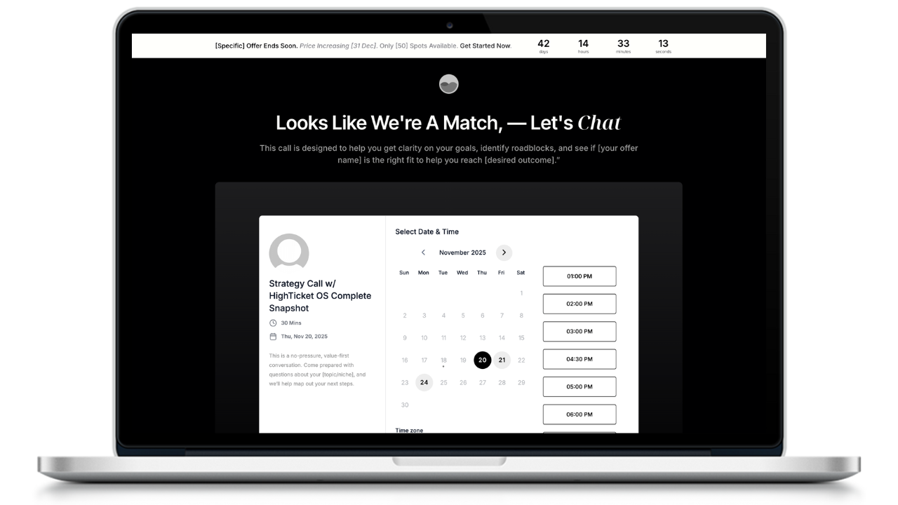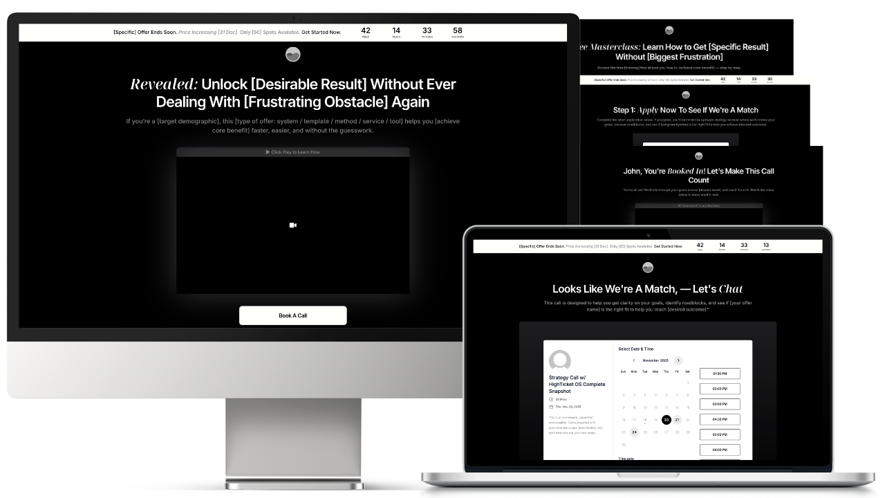 You get the full 5-page funnel, all forms, the booking calendar, legal pages, plug-and-play copy, and bonus mockups ready to launch.