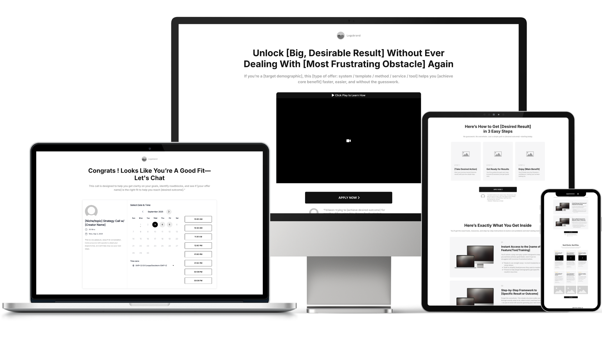 You’re getting a full high-ticket call funnel system — built to help you launch and sell your offer fast. It comes with everything you need: proven funnel pages, pre-written copy, application forms, booking calendar, automations, and more. The goal is simple: help you sign more high-ticket clients without wasting months building it all from scratch.